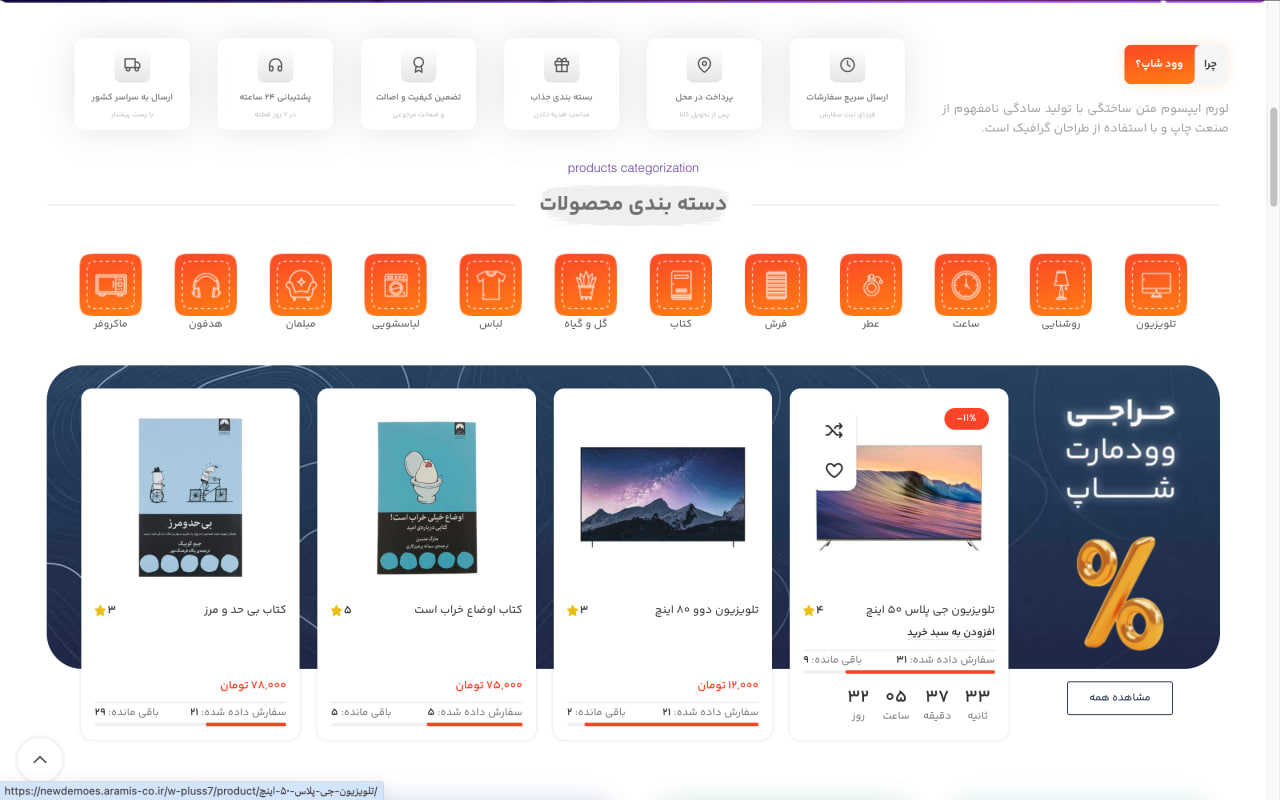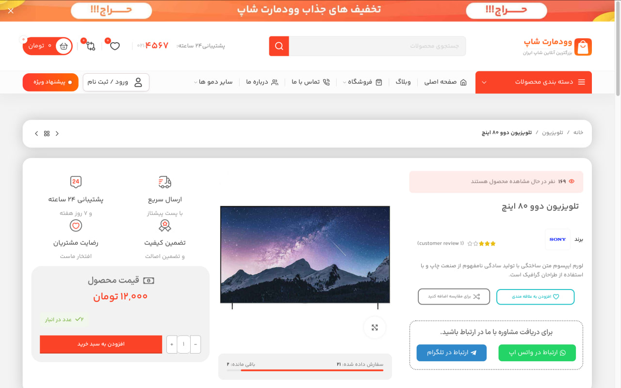این طرح شباهت زیادی به دیجی کالا را دارد و امکانات جذابی به شما خواهد داد و بصورت اختصاصی برای کالای دجیتال آماده شده است، شما میتوانید دموی آنلاین این قالب را مشاهده کنید. این قالب کاملا بهینه شده برای فروش کالای دیجیتال مثل موبایل و تلویزیون و دیگر کالاهای دیجیتال می باشد.